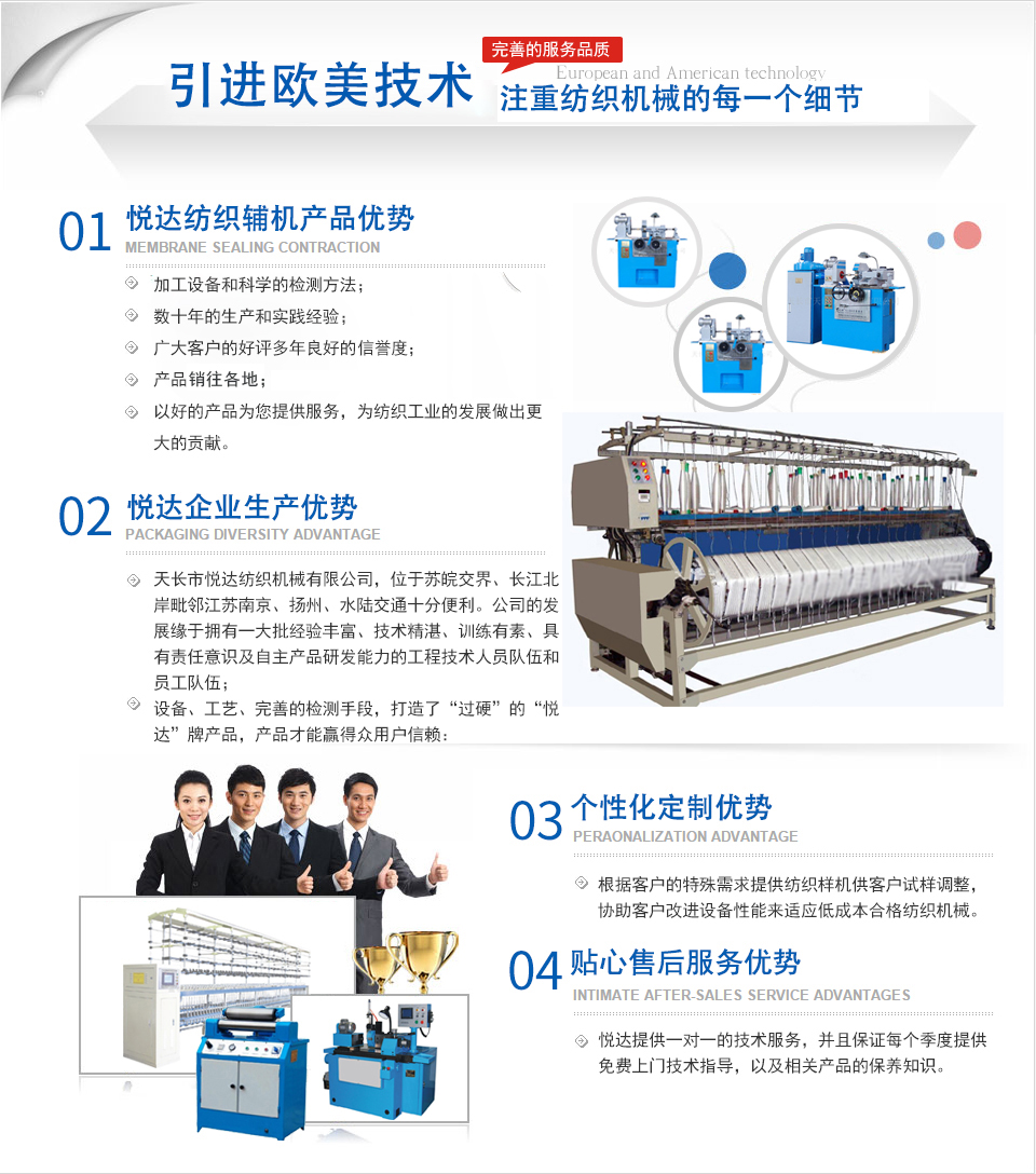 公司是主要生產紡織平車安裝工具、紡部輔件及配件綜合性企業(yè)。已有二十多年的生產歷史,在激烈的市場競爭中始終保持優(yōu)良的質量、優(yōu)化的價格、齊全的品種優(yōu)勢。產品暢銷全國各地,深受新老客戶的好評。